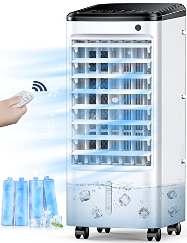 Benefitting from the powerful wind of 458 CFM, and 65° wide oscillation to circle the cooling wind throughout the whole room, this air conditioner portable for room can quickly cover your area up to 250Sq.Ft. The portable evaporative cooler comes with 0.42 sq. Ft large louvers to not endanger children and pets. You can manually adjust the louvers in any position. The coolness will blow everywhere!