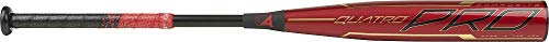 In addition, the stiffer, focused flex technology along the entire bat provides vibration reduction, protecting the player's hands from discomfort during use. The Quatro Pro BBCOR baseball bat is also designed with a metallic/gloss colorway, showcasing a black, red, and gold combination that is sure to turn heads.