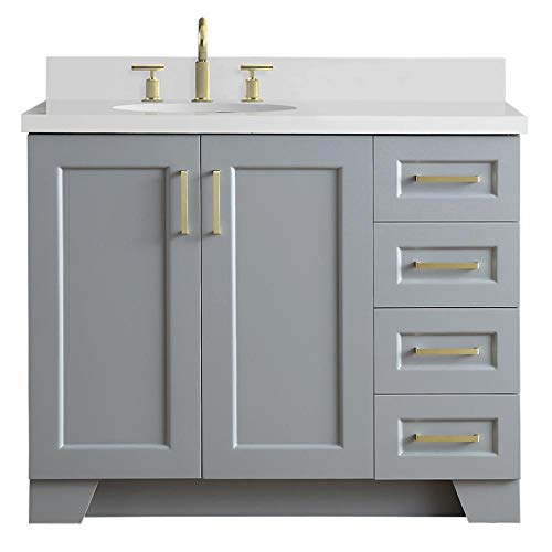Constructed with hardwood plywood, this vanity cabinet is built to last for years, while the grey painted finish adds a touch of sophistication to any bathroom. Please note that the mirror is not included and is only pictured for design purposes. The vanity cabinet features a left offset configuration for added convenience.