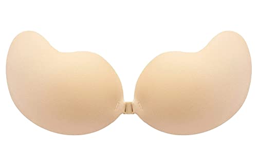 The cups of this adhesive bra are made with 100% silicone gel adhesive, which provides a strong and secure hold to your skin. The lightweight cups are easy to wear and stick onto your skin, giving you a natural-looking shape and cleavage. To wear this adhesive bra, simply stick each cup onto your breast and use the metal clasp to clip them together. This creates an invisible shape and cleavage, making it perfect for low-cut and backless outfits.