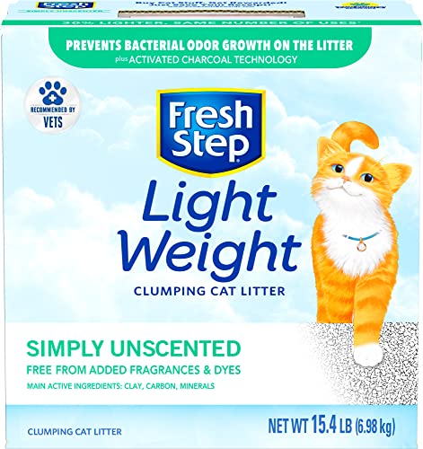 Finally, the Fresh Step Lightweight Cat Litter is the perfect choice for pet owners who want a litter that's easy to lift, pour, and store. This unscented scoopable litter is made with your cat's comfort in mind, and is gentle on their paws. Plus, its lightweight formula makes it easy to handle, even for those with limited mobility.