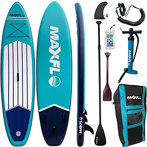 Safety and convenience are key features of this paddle board, with a 33” board width and 3 removable fins construction that provides amazing balance ability. The package includes everything you need to get started, including the board, an adjustable aluminum paddle, high-pressure pump, travel backpack, coil leash, waterproof bag, and 3 removable fins.