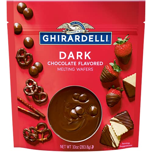 Indulge in the rich, velvety goodness of Ghirardelli Dark Chocolate Melting Wafers. These delectable treats come in a 10-ounce bag, giving you more than enough to make all your favorite dipped candies and treats. Whether you're looking to create dipped pretzels, strawberries, truffles, or anything in between, these melting wafers are the perfect choice.