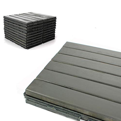 Ideal for creating an outdoor patio space with modern grey finish interlocking tiles made of acacia wood.