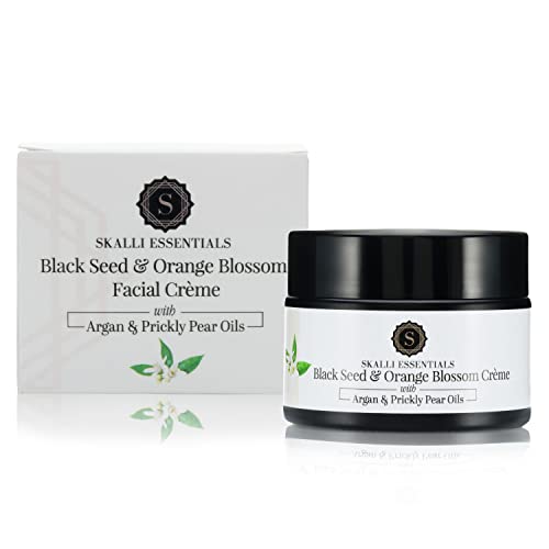 Skalli Essentials Hydrating Black Seed Oil & Orange Blossom Water Organic Hydrating Cream is a cruelty-free, vegan, and all-natural moisturizer that hydrates and nourishes the skin. The cream is made from cold-pressed black seed oil, orange blossom water, lavender flower water, aloe vera extract, whipped shea butter, organic cold-pressed prickly pear seed oil from Morocco, and organic Moroccan argan oil. The cream was not tested on animals and is 100% organic and vegan.