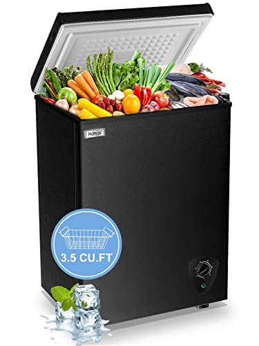 This 3.5 cubic foot free-standing chest freezer is designed to save space without compromising on capacity. The freezer measures 21" * 21.7" * 31", making it ideal for use at home, in dorms, in the kitchen, or at the office. It offers ample storage space for a variety of items, including breast milk, meat, aquatic items, cold drinks, and more.