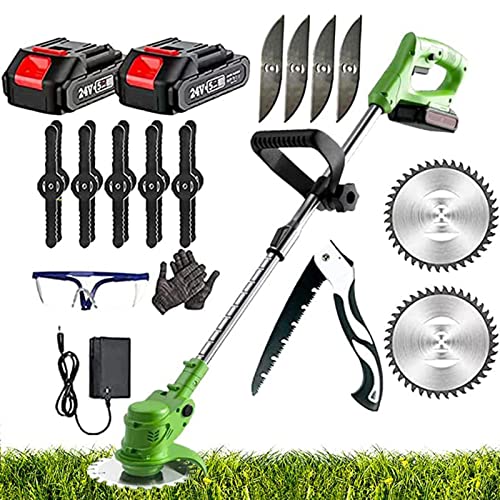 Ideal for cutting dense weeds and trimming in garden yards with its cordless electric powered 8 blades and 2 batteries.
