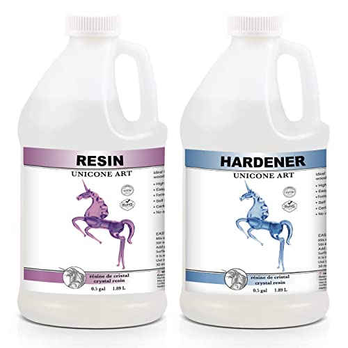 The Unicone Art Craft Epoxy Resin and Hardener Kit comes with a 1:1 formula, which includes .5 gallon of resin and .5 gallon of hardener, providing a total of 1 full gallon of art resin epoxy. The easy mix formula is BPA and VOC free, making it safe for home use. The kit is also compatible with our mica powder (sold separately), which adds an extra dimension of beauty to your final product.