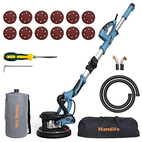 Convenience and space-saving are also key features of the Handife Drywall Pole Sander. Its extendable and collapsible design makes it easy to reach high places and transport, while the foldable hand saves space when storing. The variable speed from 800 to 1800 rpm meets the needs of the surface, whether for rapid material removal or fine finishes.
