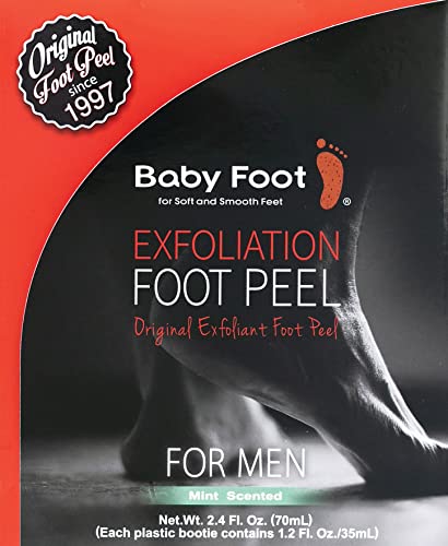 The Baby Foot Rebirth Original Foot Peel Exfoliator in Mint Scent for Men is an effective solution for those seeking to restore dry, cracked, and calloused feet. This naturally formulated gel contains botanical extracts that target and remove dead skin cells, leaving your feet feeling soft and smooth.