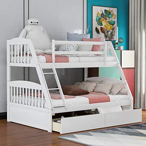 7. Bedz King Stairway Bunk Beds Twin Over Full With 4 Drawers In The Steps And A Twin Trundle, White