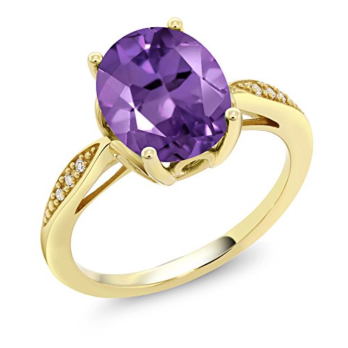 This stunning piece of jewelry boasts a 10x8mm oval heat-treated purple amethyst and a 0.7×0.7mm round single cut I – J diamond, with a total carat weight of 2.24 cttw. The piece is expertly crafted in 14k yellow gold and is stamped with a 14k mark of quality.