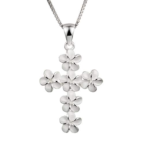 10. Hawaiian Sterling Silver Plumeria Flower Cross Pendant