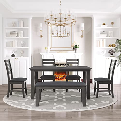 8. Merax 6-Piece Wooden Rectangular Dining Table Set With 4 Chairs And Bench Family For Kitchen, Grey