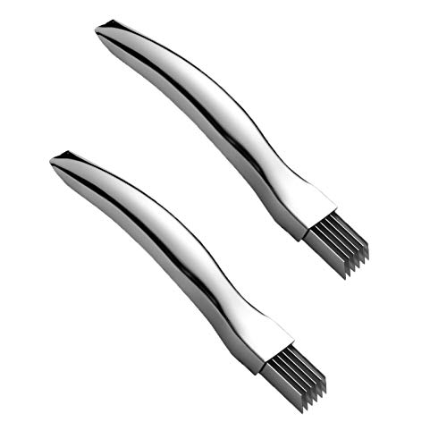 Measuring approximately 16 x 2.3 cm/6.3 x 0.9 inches, the stainless steel scallion cutter, and 15.7 x 2.3 cm/6.18 x 0.9 inches, the plastic manual onion cutter, have an appropriate size that is portable and comes with a long handle part for comfortable and secure grip.