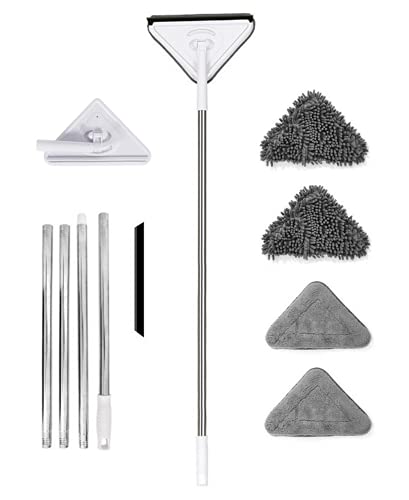 Ideal for cleaning hard-to-reach areas like walls, ceilings, and baseboards with an adjustable extended pole and washable head pads.