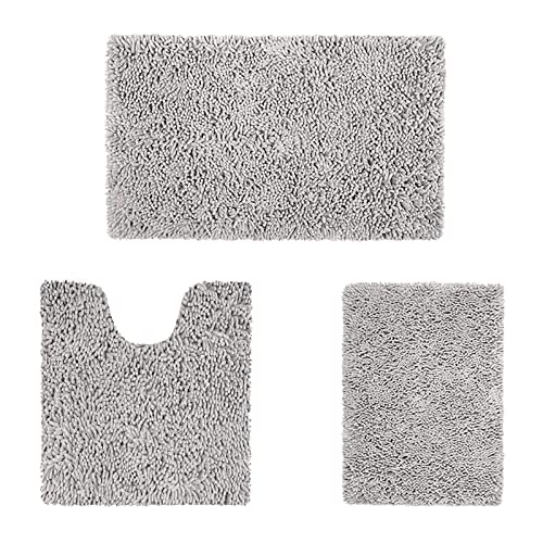 Introducing the Perfect 3 Pieces Bathroom Rugs, a complete set that includes a small bath rug measuring 17"x24", a U-shaped contoured rug measuring 20"x24", and a large bath rug measuring 20"x32". These rugs are constructed with a unique fiber-locking technique that ensures there will be no fiber-dropping, making them thicker and better constructed than most other rugs in the market.