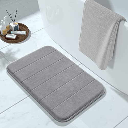 1. Softgrip Grey Bath Rug With Memory Foam Support