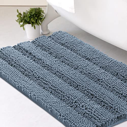 6. Stone Blue Chenille Non-Slip Bath Rug