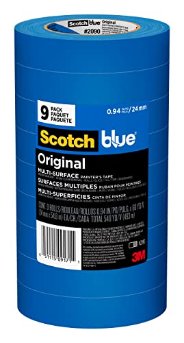 Introducing the ScotchBlue Original Painter's Tape, a reliable solution for preparing to paint any living or working environment. This product includes nine rolls of 0.94 inch wide tape, providing ample coverage for all your painting needs.