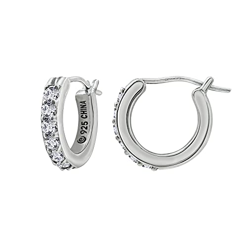 Introducing the 1/2" hoop earrings, an elegant addition to any jewelry collection. The earrings are set with round brilliant cut Infinite Elements Cubic Zirconia, weighing 3/4 carat total weight. The platinum plated sterling silver earrings are secured using hinges with notched posts, ensuring a comfortable and secure fit.