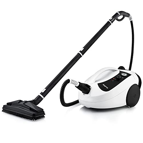 This steam cleaner comes with 17 premium accessories that can remove grease, grime, and stains from a variety of surfaces. The easy-roll wheels, 16-foot cord with built-in wrap, and two extension wands make it easy to maneuver both indoors and outdoors. This multipurpose canister steam cleaner is safe to use on a variety of surfaces, including ceramic tile, laminate flooring, waterproof wood floors, carpet, windows, upholstered furniture, fabrics, mattresses, kitchen ovens and countertops, toys, baseboards, bathrooms, vehicles, and even BBQ grills.