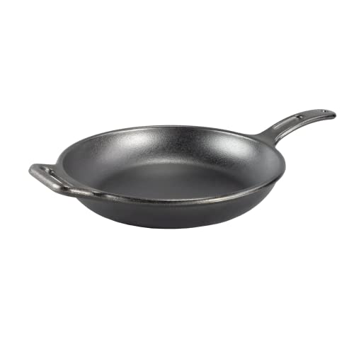 Ideal for cooking and frying various dishes using cast iron material and an ergonomic handle for easy maneuvering.