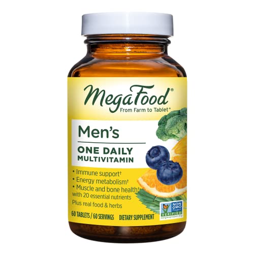 MegaFood Men's 40+ One Daily supports men's health with selenium and zinc, and is non-GMO, gluten-free, vegetarian, dairy-free, and soy-free.